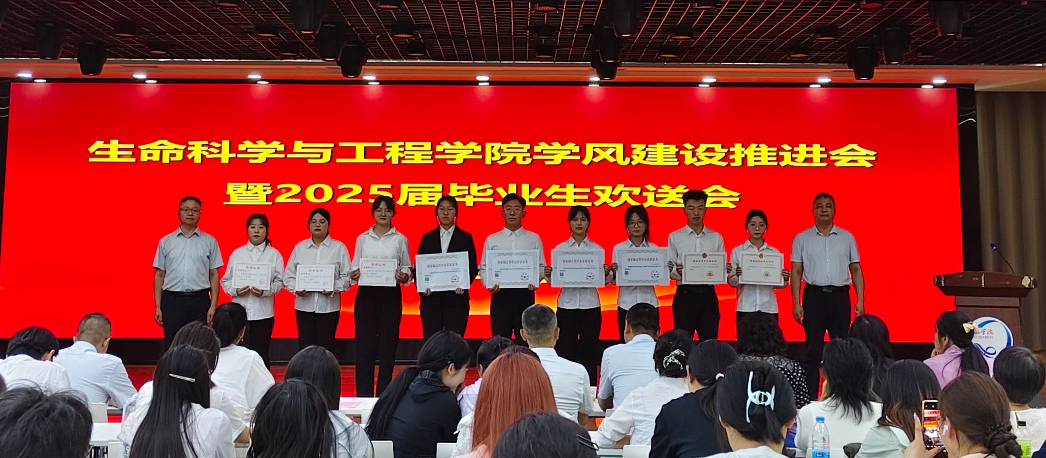 6月12日,87978797威尼斯老品牌在团委四楼多功能厅召开学风建设推进大会暨2025届毕业生欢送会。学院教职工和学生代表近200人参加了会议。