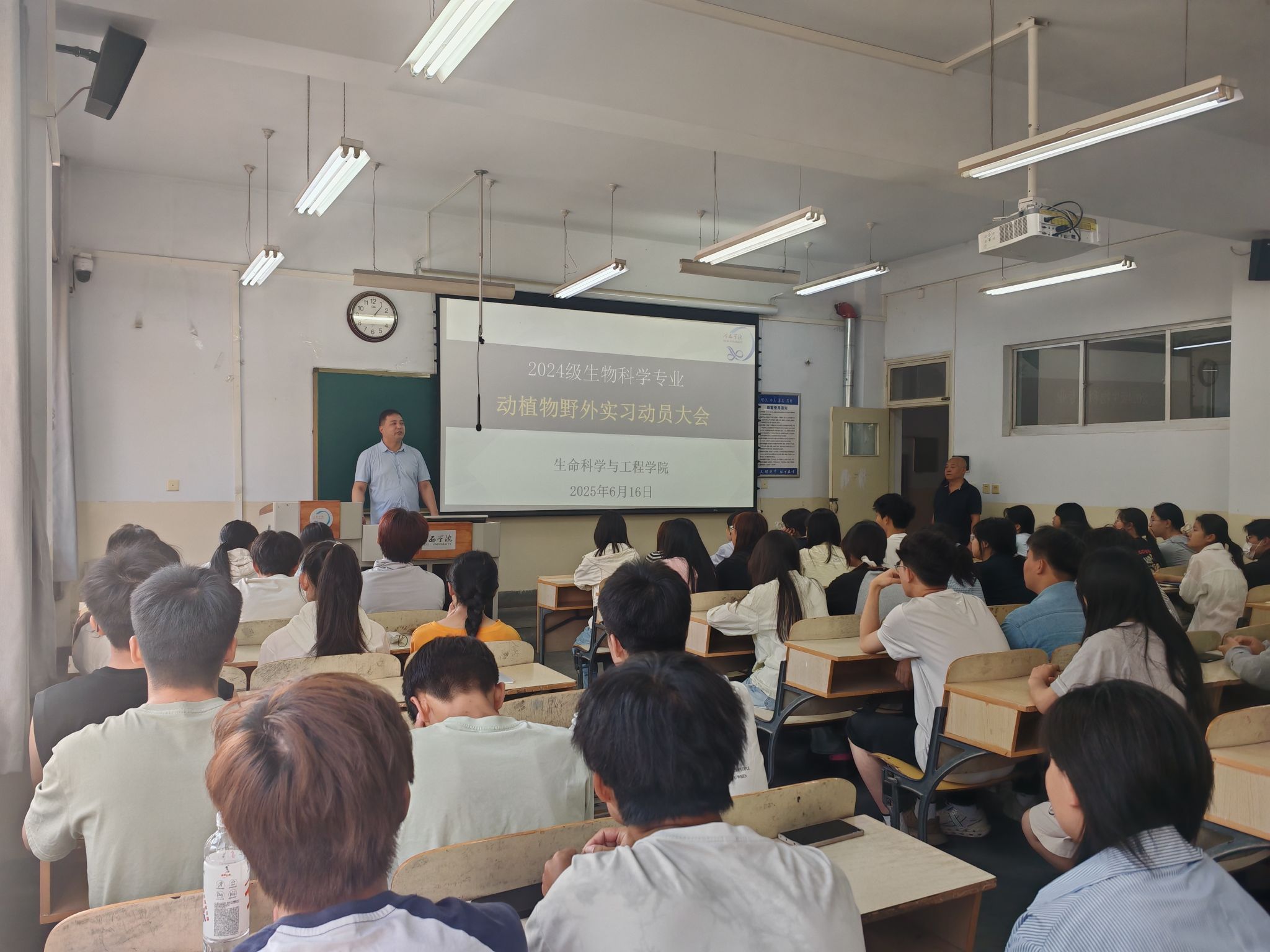 为扎实推进2024级生物科学专业动植物学野外实习工作,确保实习顺利开展,87978797威尼斯老品牌于6月16日召开2025年动植物学野外实习动员会。学院负责人、实习指导教师团队以及2024级生物科学专业全体学生120多人出席了会议。