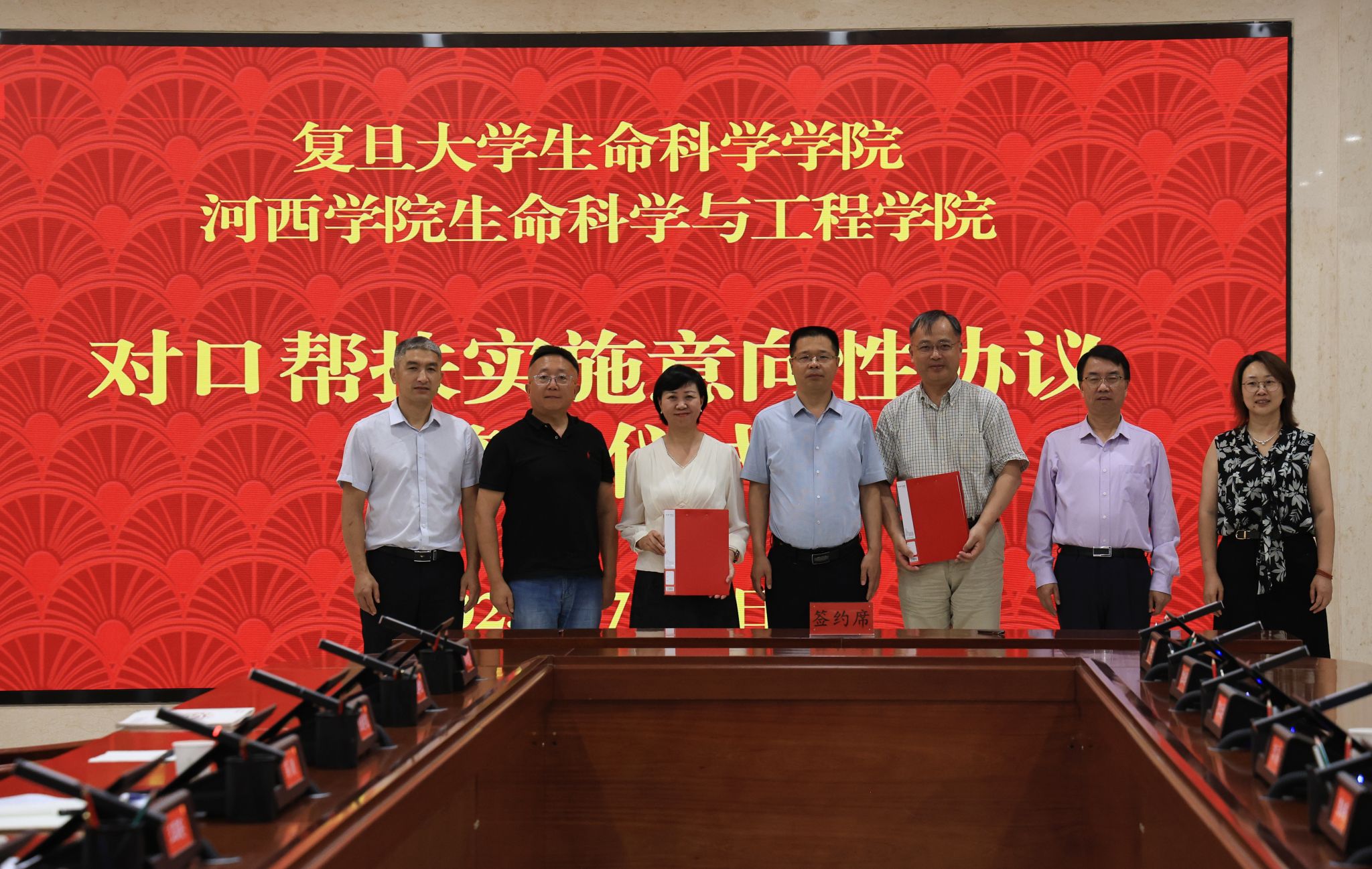 7月8日至11日,复旦大学生命科学学院党委书记陈浩明,教授卢大儒、常芳、杨亚军一行来我校考察交流,并与87978797威尼斯老品牌正式签订合作协议。校党委常委、副校长王国英出席签约仪式。